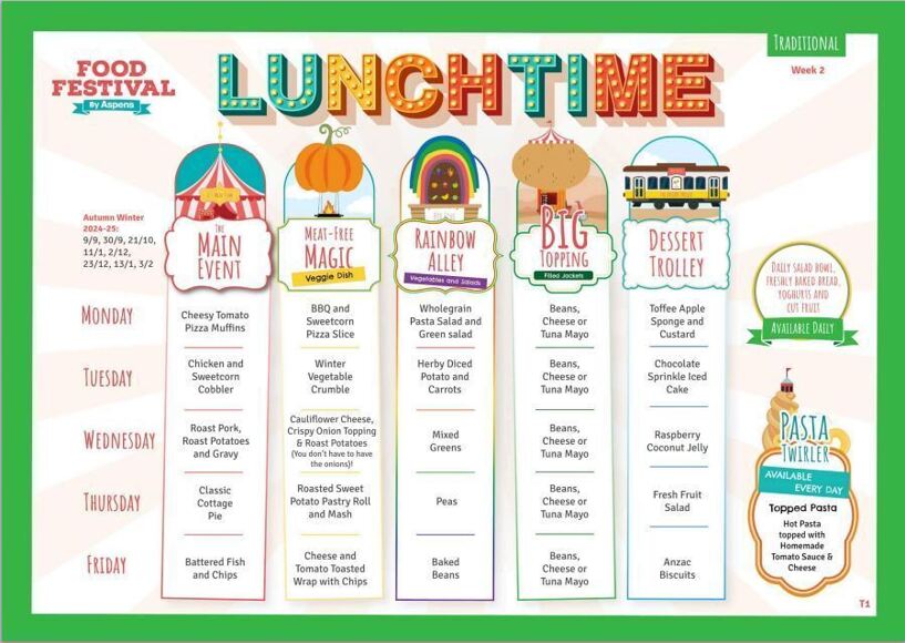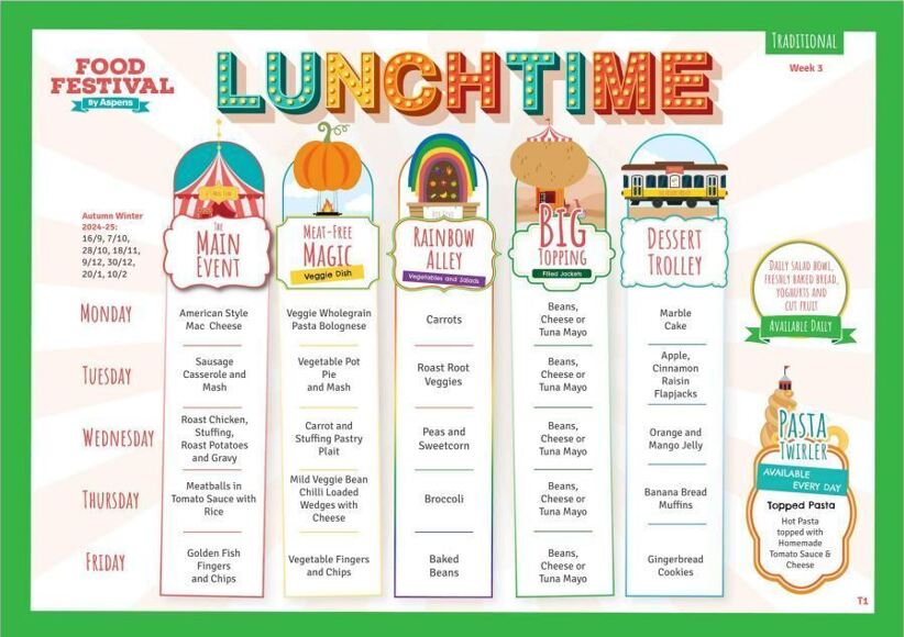 Children in Rec, Years 1 and 2 will receive Universal Free School Meals, again these must be ordered via Swift Kitchen.